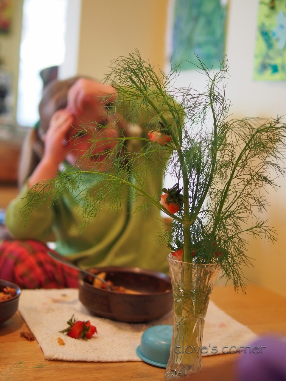 ^Here you made an "apple tree" from a sprig of fennel and some discarded strawberry tops.^